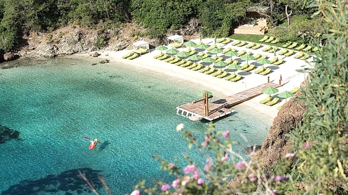 Sahibi bir mimar ve aynı zamanda üniversitede hoca olan Pilos Deluxe bohem tasarımı, müzikleri ve ortamlarıyla hem çok çok keyifli, hem de bizce fiyat/ performans olarak kaçırılmayacak bir seçenek. Minik ev tarzı yapılardan oluşan otelin 2 odalı, tek odalı suitlerine ek olarak bir de jakuzili suiti var. Otelin bir kısmı tepeden deniz seyrediyor, 2022’de açılacak olan yeni kısmı ise denize sıfır. Bizim gibi üst taraftan tutarsanız bile denize erişim çok kolay, shuttle ile 30 saniye de varılıyor, ya da yürüyebilirsiniz. Ayrıca plajı da beach clublarla kapışır kadar stil sahibi. Odalarda, klima, espresso makinesi, tv, minibar ve saç kurutma makinesi mevcut. Oteli detaylı incelemek ve rezervasyon yaptırmak için tıklayın.