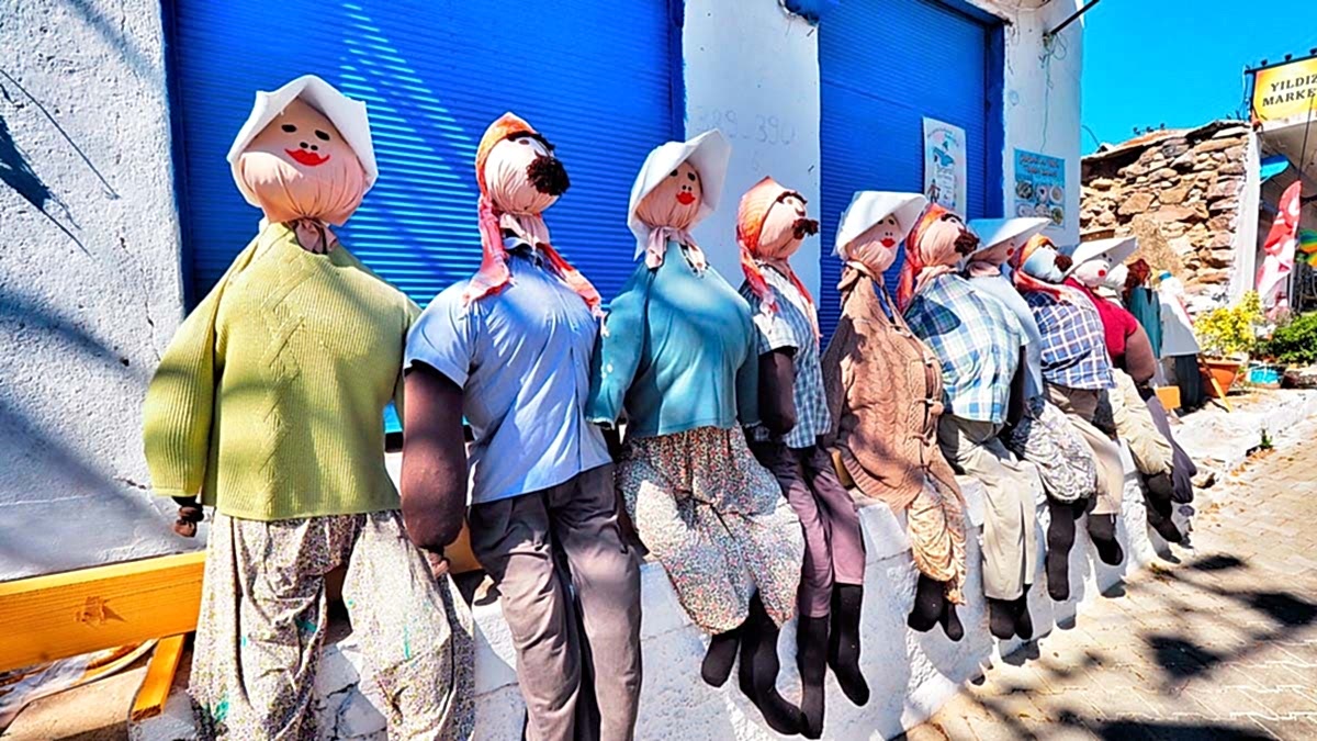 Barbaros gözlerden uzak, iç taraflarda, sessiz sakin bir köy. Urla’nın, Alaçatı’nın yazar çizer tayfasından bu köyün hareketlenmeye başladığını öğrenince merak edip geldik. Köyün girişinde bizi hemen insan boyunda korkuluklar karşıladı.