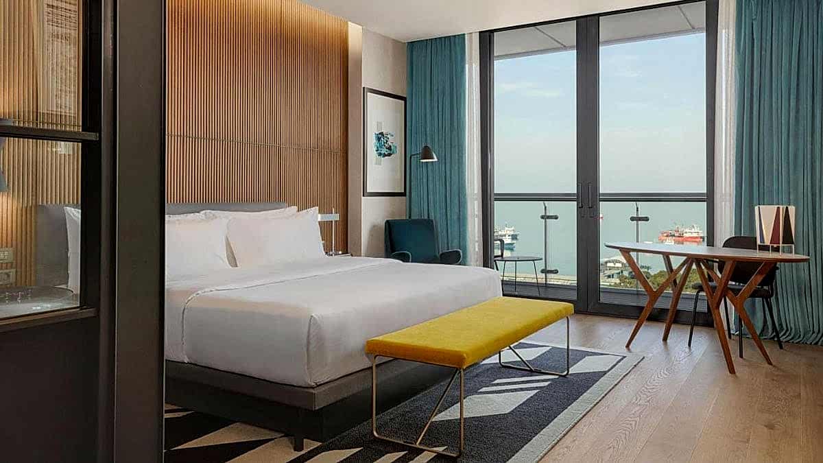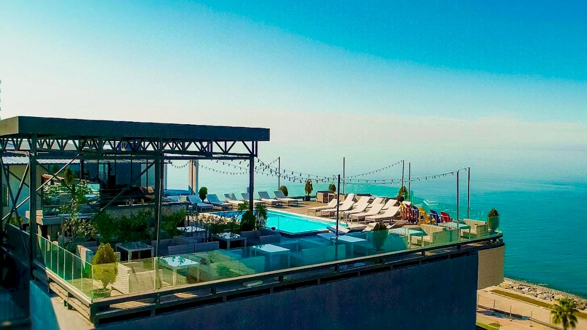 Beş yıldızlı Le Meridien Batumi, modern ve şık tarzda dekore edilmiş deniz manzaralı oda ve süitler sunuyor. Yüzme havuzu, fitness merkezi, saunası, bar ve restoranı mevcut. Her odasında özel banyo, klima, kettle, kahve makinesi, minibar ve deniz manzaralı balkon bulunuyor. Bebek karyolası ücretsiz olarak sağlanıyor, çocukların ve evcil dostların konaklaması için uygun. Oteli detaylı incelemek ve rezervasyon yaptırmak için tıklayın. Haritada 1 numara.