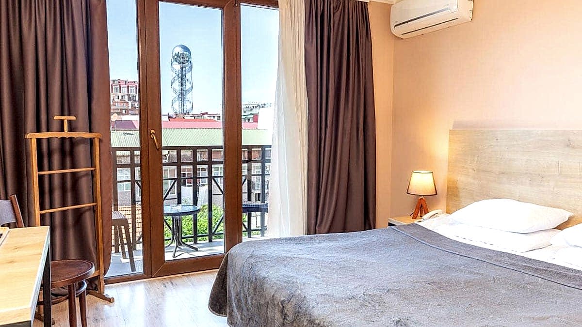 Graphic Hotel Batumi bölgenin 4 yıldızlı otelleri arasında. Otelin açık büfe kahvaltısı, restoran ve barı bulunuyor. Her odası özel banyo, tv, klima, çalışma masası, kettle ve şehir manzaralı balkona sahip. Çocukların konaklamasına uygun, bebek karyolasının sağlanması müsaitliğe bağlı. Maalesef evcil hayvanlar kabul edilmiyor. Oteli detaylı incelemek ve rezervasyon yaptırmak için tıklayın. Haritada 18 numara.