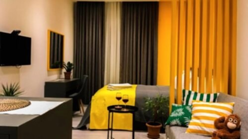 Uygun fiyatlı daire seçenekleri sunan bir işletme. Modern canlı renklerle döşeli kompakt odaları var. Hepsinde yemek alanı, minik yeterli bir mutfak, oturma ve çalışma alanı var. İncelemek için TIKLAYIN.