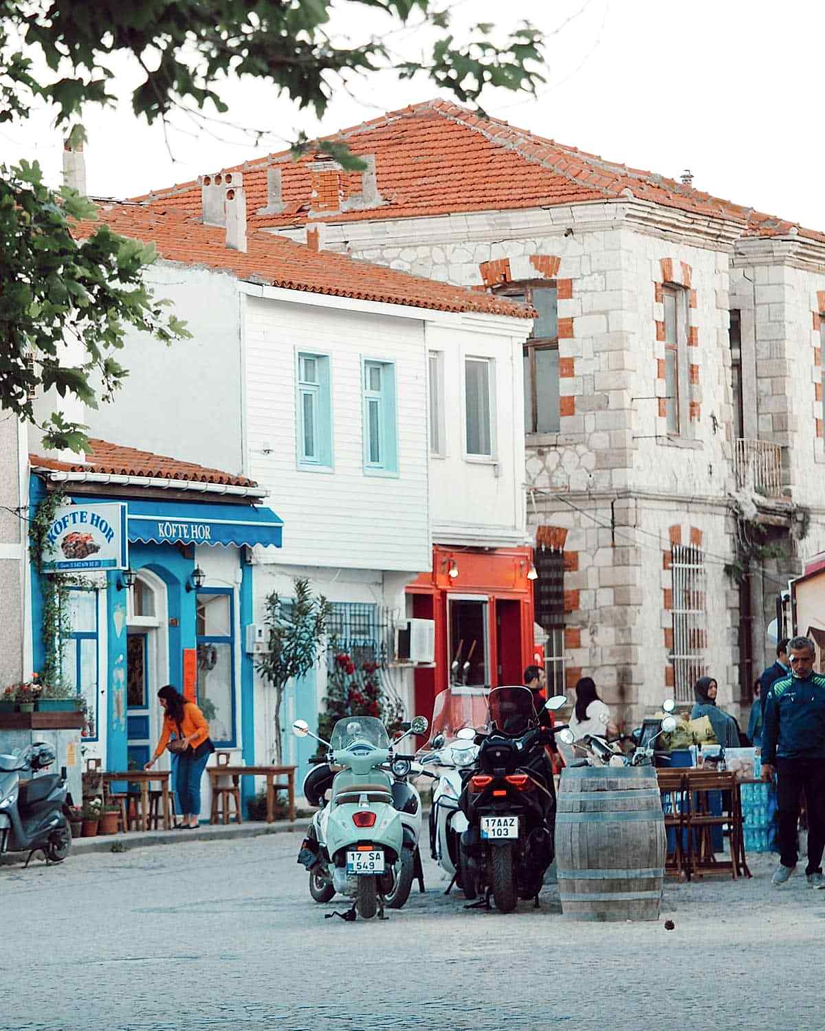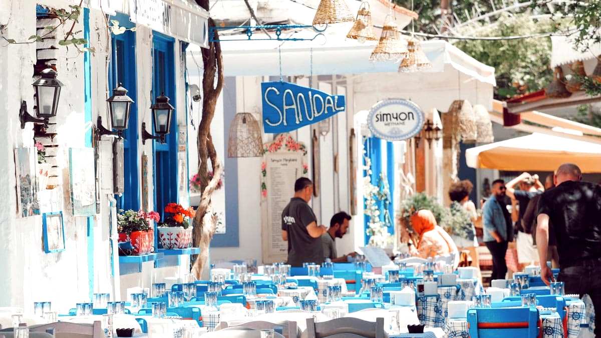 Türk mahallesi ise adanın merkezinin sol yakasını oluşturuyor. Google Maps’ten bu mahallenin yapısına baktığınızda komşusu Rum mahallesi gibi ızgara planda olmadığını göreceksiniz. Bir diğer farkı da sokakların daha dar olması ve cami, çeşme, hamam, namazgah gibi yapılara ev sahipliği yapması. Rum mahallesi kadar çok ve özel seçenek olmasa da adanın mekanları buraya doğru yavaş yavaş uzanmaya başlamış. Ara sokaklarda minik dükkanlar, ev yemekçiler, pideciler gibi opsiyonlar var. Türk Mahallesi Rum Mahallesi’ne göre daha sakin, mekanlardan çok konaklama seçeneklerinin olduğu bir bölge. için tıklayın. Haritada 4 numara.