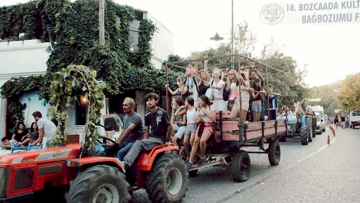 Eğer Bozcaada’ya gelişinizi ağustos sonu eylül başına denk getirirseniz de adada bağbozumunu dönemini yakalamış olursunuz. Bu dönem adanın en canlı dönemlerinden biri. Hatta 3 günlük bir Bağbozumu Festivali de gerçekleştiriliyor. Merkezden iki saatte bir çok şirin asma yaprakları ile süslenmiş, adanın en meşhur murallerinde de imzası olan Cemil Onay’ın fırçası ile renklendirdiği kasalı traktörlere binip hasır sepetinizle bağlara gittiğiniz, üzüm topladığınız bağbozumu turları oluyor. Belediye, Kaymakamlık ve Bağcılar Kooperatifi’nin iş birliğinde düzenlenen bu turlarda her gün bir üreticinin bağına gidiliyor. Bu turlara katılmak isterseniz, ada merkezinde kurulan tur stantlarına başvurarak belirtilen saatteki araca rezervasyon yaptırıyorsunuz. Cüzi bir miktara sepetinizin aldığı kadar üzüm toplayabiliyorsunuz.