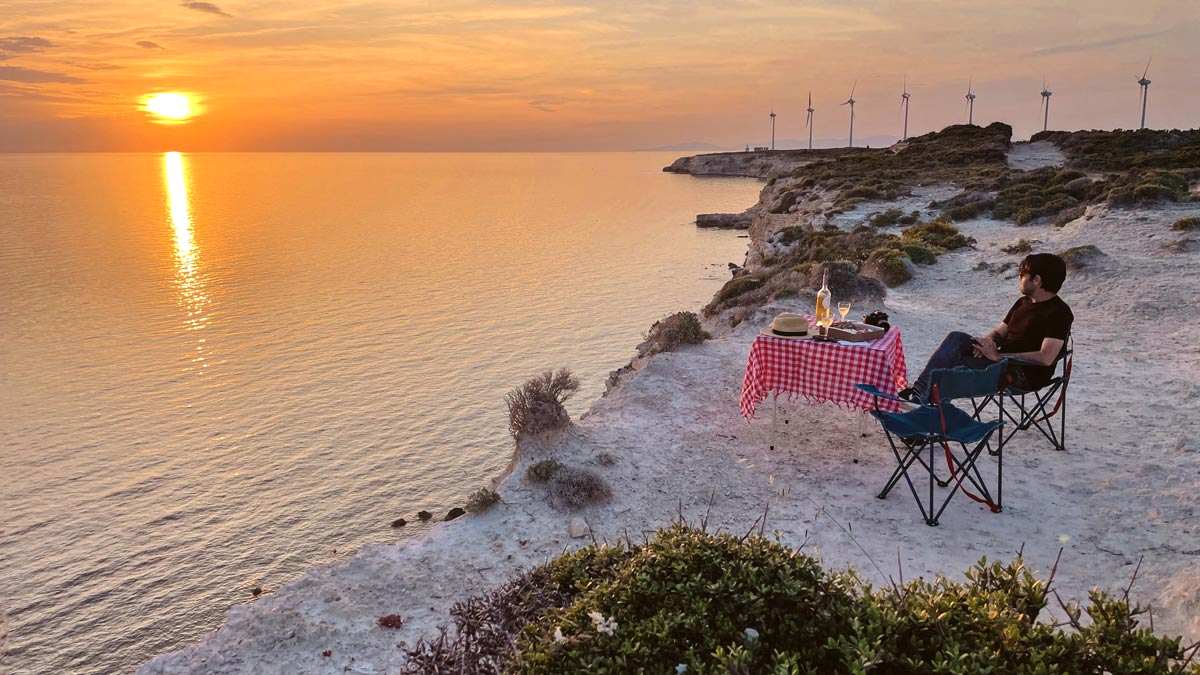 Adada günbatımı saatinde kesinlikle gitmeniz gereken yer ise, adanın en batı ucundaki Polente Feneri ve ona çıkan, rüzgar türbinlerinin olduğu falez. Kısaca Polente diye geçen bu bölge, sandalyenizi, örtünüzü ve birkaç çeşit atıştırmalığınızı veya pizzanızı kapıp adadaki en güzel gün batımını yakalayacağınız yer.