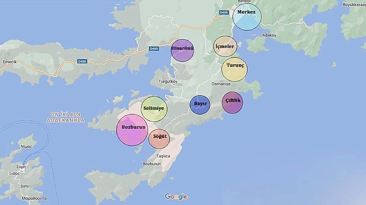 Marmaris’te Gezilecek Yerler Haritası