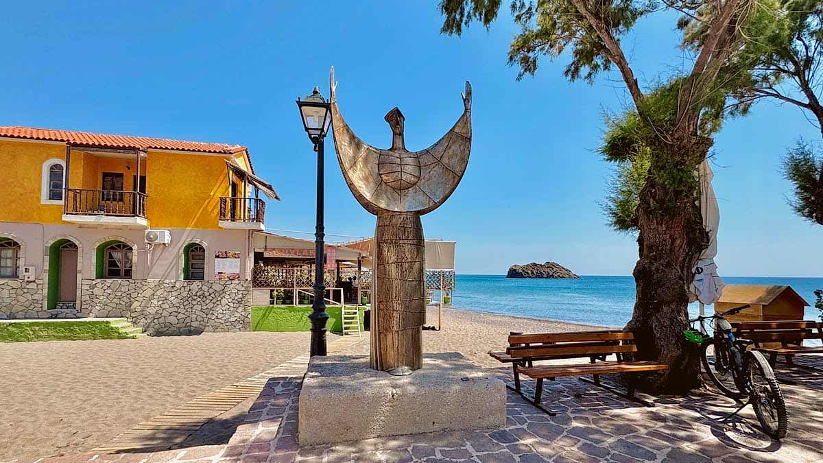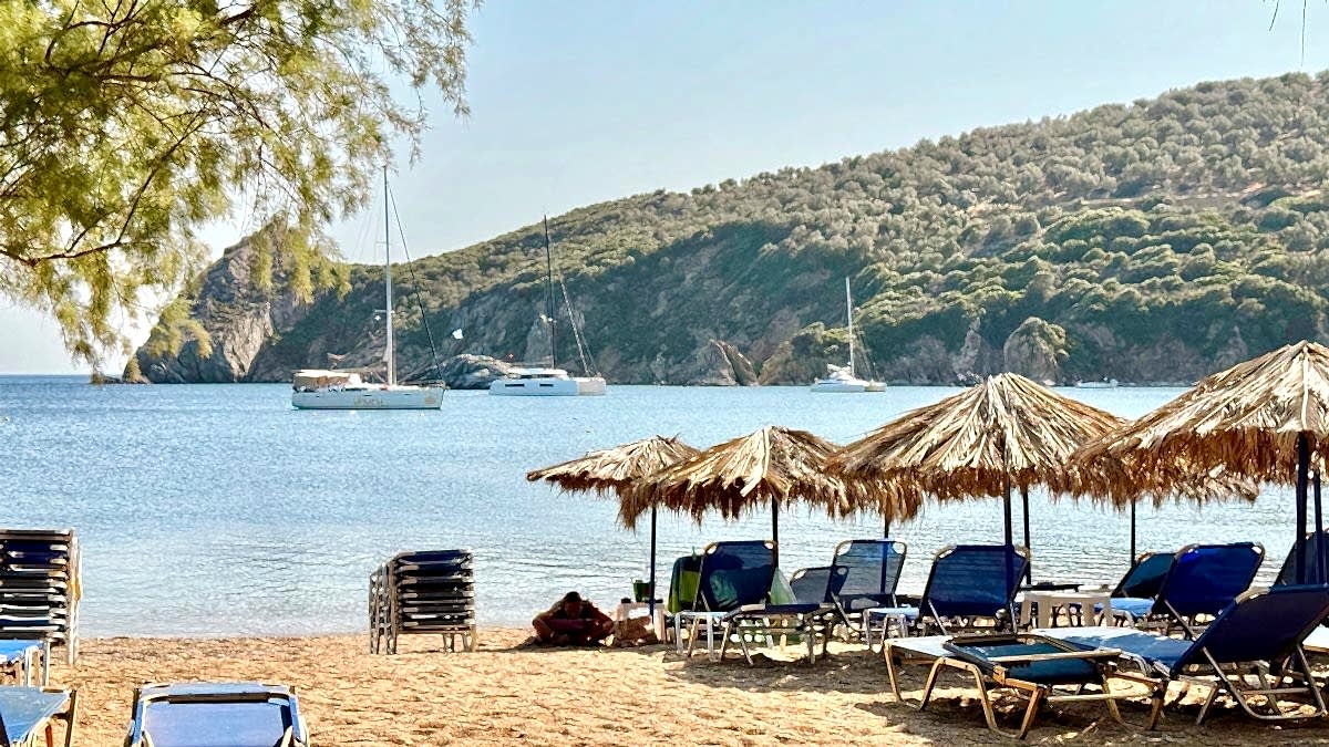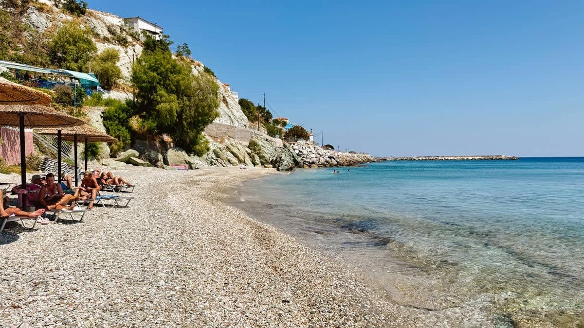 – Skala Sikamineas Plajı: Kayalıkların üstündeki Panagia Gorgona kilisesine ve küçük bir balıkçı kasabası limanına bakan koy. Kafe ve tavernalarla çevrili koyun suyu berrak, plajı kum ve çakıl taşı karışık türden. Deniz ayakkabısına, kendi şezlong ve şemsiyenize ihtiyacınız olacak. için tıklayın. Haritada 8 numara.