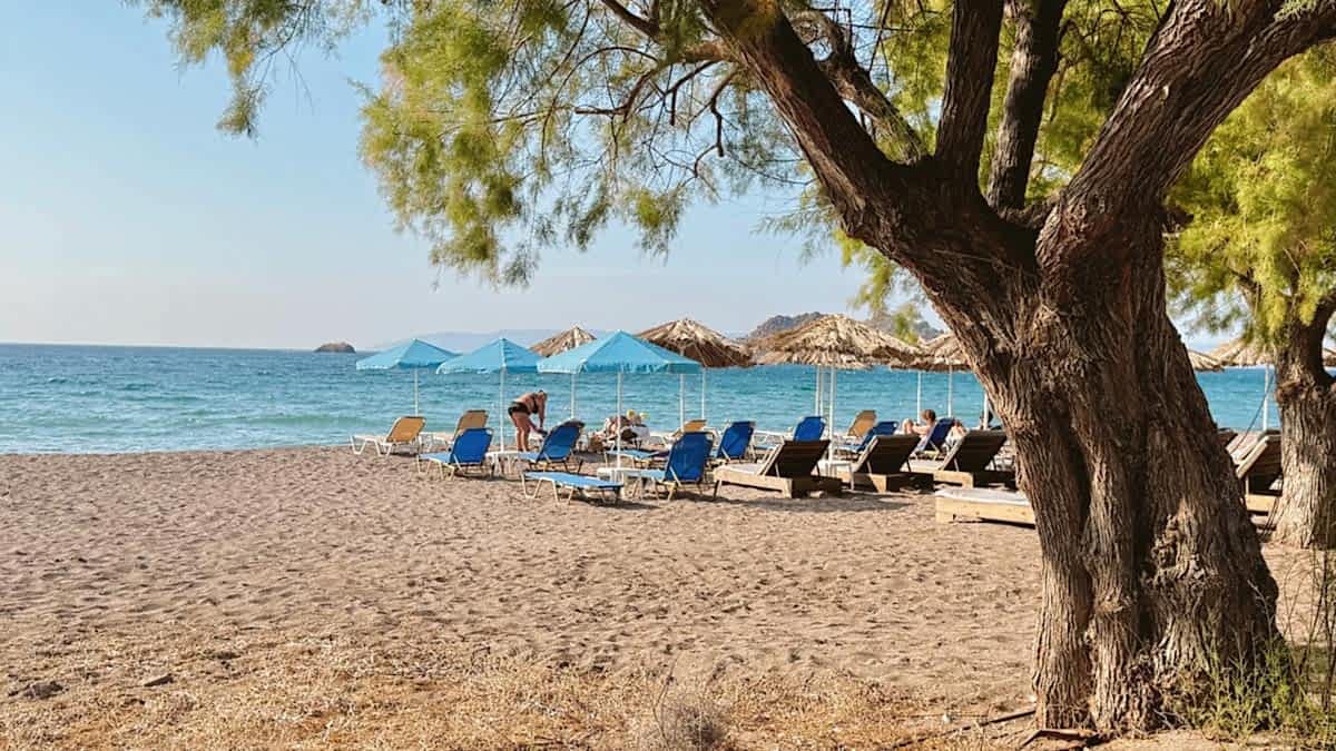 – Kagia Plajı: Skala Sikaminias’tan arabayla beş dakikada ulaşabileceğiniz tamamen bakir bir koy. Denize giriş kısmı oldukça çakıllı o yüzden deniz ayakkabısı gerekli olabilir. Soyunma kabinleri ve duşlar mevcut. Çevresinde iki adet restoran ve taverna da var. Ayrıca ağaçların gölgelediği ferah bir plaj, bu sebeple şemsiyeniz yoksa da üzülmeyin. Gerçek sakinlik arayanların ve yerellerin tercihi. için tıklayın. Haritada 11 numara.