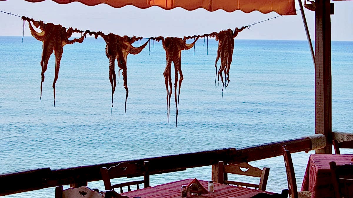– Güneşte Kurutulmuş Ahtapot: Yunan adalarının klasik görüntüsü olan ipe asılarak güneşte kurutulmaya bırakılmış ahtapotlar adanın her yerinde rastlayabiliyorsunuz. Bizce ızgarası en makbul ama menülerde şarapta ahtapot veya ahtapot salatası gibi farklı versiyonları da var.