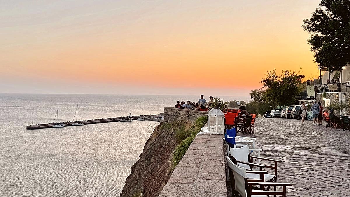 – Panorama, Molyvos: Molyvos Kalesi’nin çıkışında kalan bir kafe. Adının hakkını veren panoramik bir gün batımı manzarası sunuyor. Atıştırmalık yiyecekler de var. için tıklayın. Haritada 33 numara.