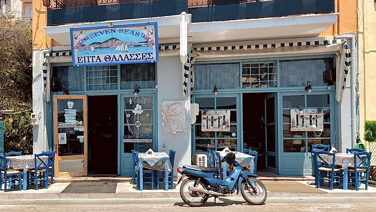 – Seven Seas Taverna, Plomari: Plomari sahilinde, iskele manzaralı bir taverna. Mavi sandalyeleri ve önü deniz gören açık balkonuyla tam bir ada restoranı. Menüsü oldukça beğeniliyor ve kabak çiçeğinden patlıcanına her kızartması oldukça iyi. Deniz ürünlerini denemelisiniz ve kalamar yemeden de ayrılmayın. için tıklayın. Haritada 54 numara.