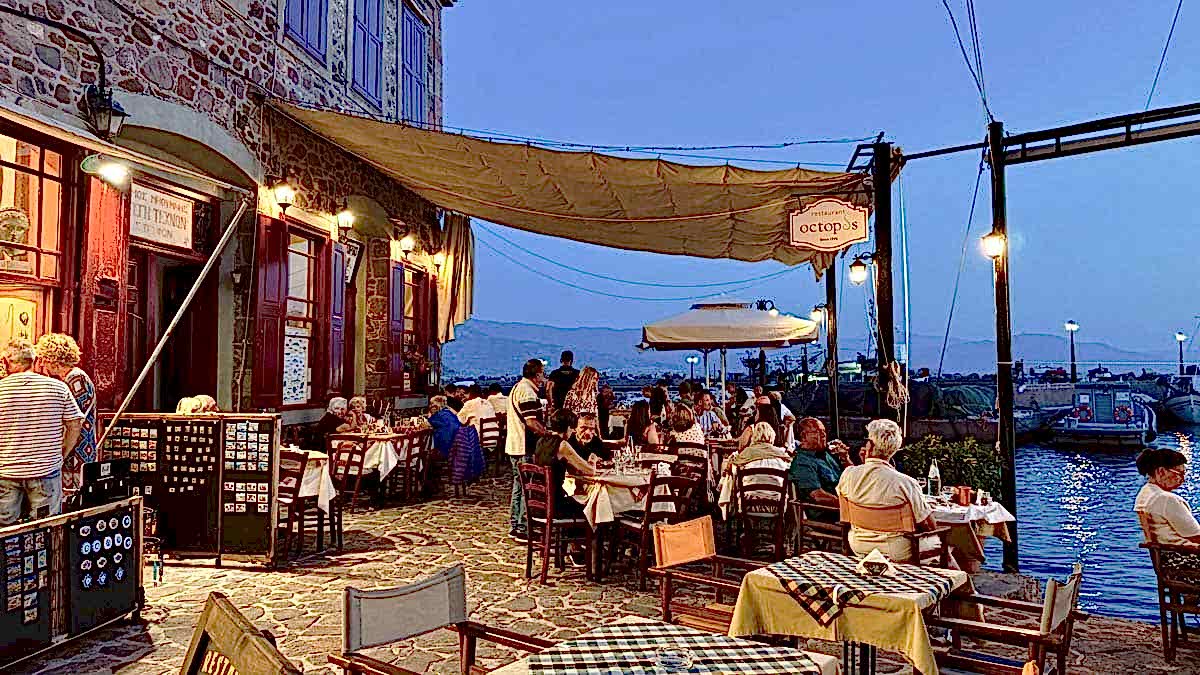 – The Octopus Restaurant, Molyvos Liman: Midilli’ye gideceğim dediğinizde birileri kulağınıza mutlaka The Octopus’a gitmenizi fısıldayacaktır. Kendisi Molyvos Limanı’nın en popüler restoranı. Denize sıfır olması ve Molivos kalesi manzarasıyla etkileyici bir konuma sahip. Tazecik balıklar, zeytinyağlılar, deniz mahsülleri ile çok geniş bir menüsü var. Özellikle de kabak çiçeği kızartması başarılı. Rezervasyon şart çünkü fazlasıyla popüler. Websitesinden kolaylıkla yapabiliyorsunuz. Güneşte kurutulmuş ahtapot bizim damak zevkimize göre biraz sertti ancak sarımsaklı hardal soslu karides çok lezizdi. Yalnız popülariteden olacak adanın geri kalanına göre fiyatlar burada daha yüksek. için tıklayın. Haritada 22 numara.