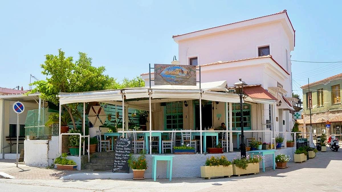– Aigaío, Skala Eresou: Skala Eresou meydanında, mavi sandalyeleri ile dikkatinizi hemen çekecek popüler bir restoran. Karides, ahtopot ve kalamar gibi lezzetleri deniz kenarında yiyebilme fırsatı sunuyor. için tıklayın. Haritada 51 numara.