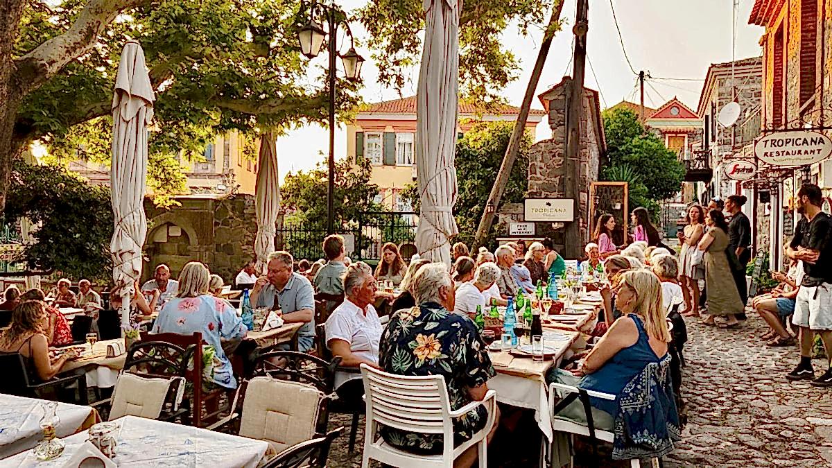 – Tropicana Platanos, Molyvos: Limandan biraz uzaklaşalım, Molyvos’un ara sokaklarına girelim derseniz Tropicano Platanos’a doğru yol alabilirsiniz. Andreas Kyriakou Meydanı’ndaki büyükçe bir ağacın altında, daha çok yerel halk tarafından gidilen aile işletmesi bir taverna. Menüsünde geleneksel ada lezzetleri var ama elbette deniz mahsülleri denemeniz gerekenlerden. Talep gören bir yer olduğu için rezervasyon yaptırıp gitmek gerek. Konum için tıklayın. Haritada 26 numara.