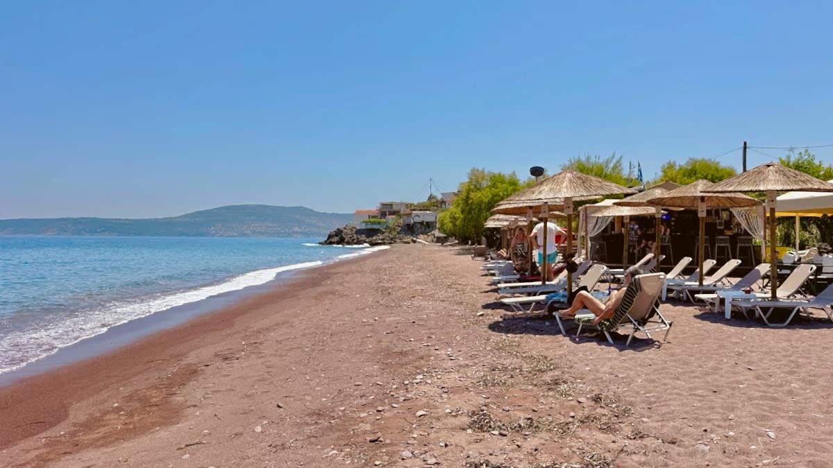 – Plomari Plajı: Midilli’nin en büyük kasabalarından olan Plomari’nin diğer plajlara kıyasla nispeten daha kalabalık olan plajı. Denizi hem berrak hem sığ. Daha çok çocuklu aileler tarafından tercih ediliyor. Duş ve wc var. Şezlong ve şemsiyeleri de işletmeden bir şeyler aldığınız sürece ücretsiz kullanabiliyorsunuz. Etrafında çeşitli taverna ve restoranlar da mevcut. Zemini çakıl taşlı olduğu için yanınızda deniz ayakkabısı getirmekte fayda var. için tıklayın. Haritada 15 numara.