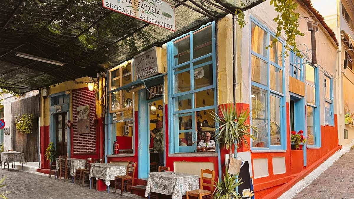 – Kafentaria, Agiasos: Panagia tis Agisaou Kilisesi’nin hemen yanında bulunan sevimli bir kafe. Arnavut kaldırımlı sokaklardan gelip geçeni izleyebileceğiniz Yunan adalarına özgü yeşil renkli sandalye ve masaları var. Menüsü de el yapımı tatlılardan, kahve limonata gibi içeceklerden oluşuyor. Tercih etmek isterseniz kahvaltısı da var. için tıklayın. Haritada 59 numara.