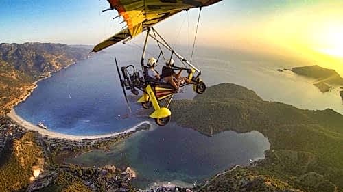 Microlight kuşlardan bile zarif uçuyor. Sanki ağırlığı yok. Bir oksijen partikülüsün de, hava zaten senmişsin gibi esmek Ölüdeniz’in üzerinde.