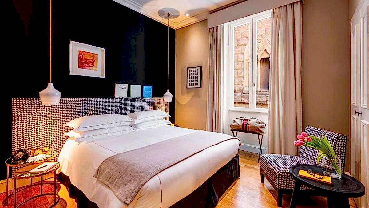 Hotel Grifo merkezi konumda, tatlı taş binalarla çevrili bir sokakta yer alıyor. Sarı tabelasını eminiz hemen göreceksiniz. Sokak eski bina ve sarmaşıklarıyla oldukça sakin. Odalar sade ve aydınlık döşenmiş. Tv, çalışma alanı, banyo gereçleri gibi küçük ihtiyaçlarınız düşünülmüş. Taze kruvasanlar, tatlı ve tuzluların olduğu kontinental bir kahvaltı sunuyor. Evcil hayvanınızla konaklayabilirsiniz. Maalesef otopark bulunmuyor. Havalimanına transfer servisi sağlıyorlar. Oteli detaylı incelemek ve rezervasyon yaptırmak için tıklayın. Haritada 27 numara.