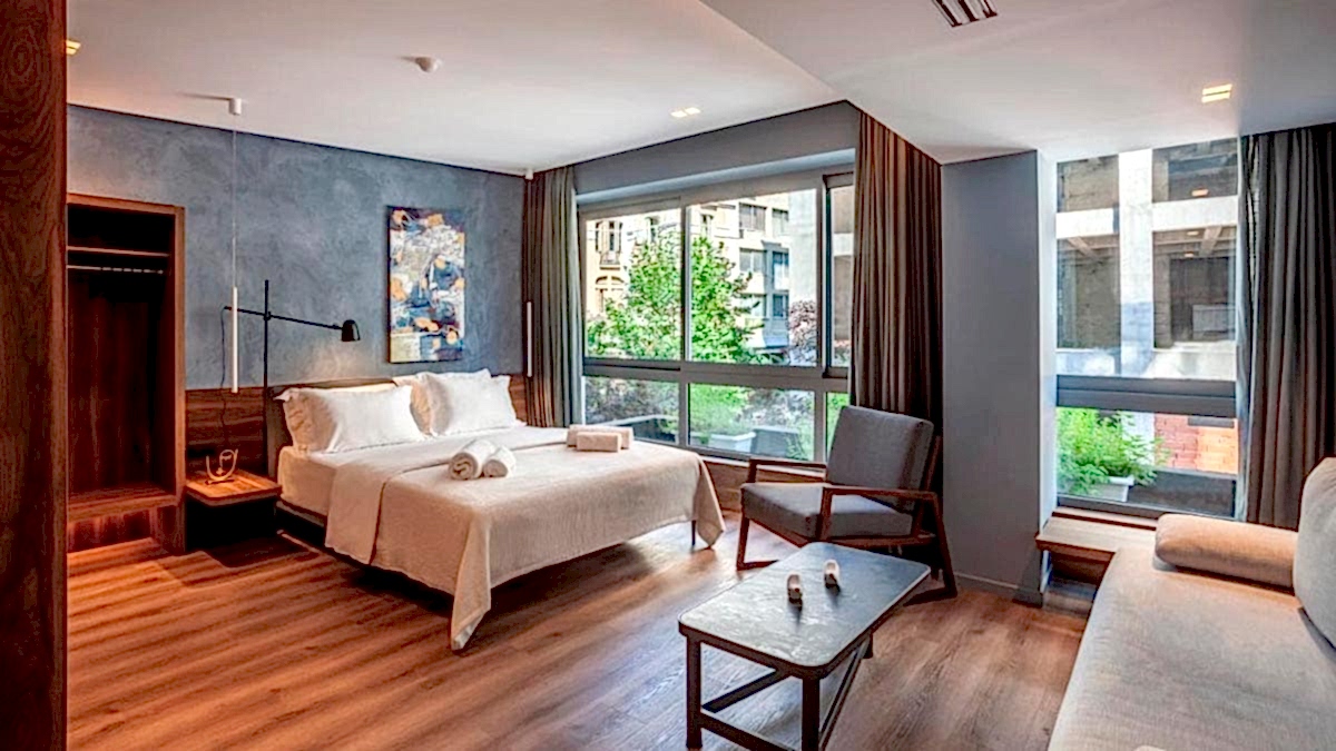 Thirtynine Urban Stay, modern tonlarda, pastel ve gözü yormayan renklerde, küçüklü büyüklü odalar sunuyor. Odaların bazıları balkonlu. Tüm odalarda çalışma masası, buzdolabı, klima, dtv, banyo gereçleri gibi temel şeyler var. Bazı odalarda mini bir mutfak da yer alıyor. Spor salonu, ortak vakit geçirme alanı ve teras beğenilen alanlardan. Park yeri maalesef yok. Miniklere karyola desteği sağlıyorlar. Evcil hayvanlar burada konaklayamıyor. Havalimanı servisi yapıyorlar. Oteli detaylı incelemek ve rezervasyon yaptırmak için tıklayın. Haritada 25 numara.